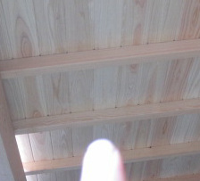 上の写真は、化粧野地板そのまま天井として、使用するため、部屋の中からみると『野地板あらわし』などと表現される
