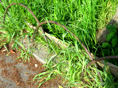 よく、花壇や、芝生の縁などに、使用されているが、どうしても、腐るので、よく、丸形の鉄筋や、塩ビなどで、されていたりする。