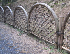 竹の径の、寺戸大塚古墳に接する部分の竹垣として、古墳をイメージして、作られた竹垣です。