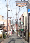 広隆寺の南楼門前から西へ 嵐電帷子ノ辻駅までの商店街です。