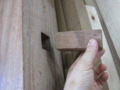 継ぐ材料に、小さな穴をあけ、それが入るような破片(円柱形または四角柱材)を穴に入れ、また、同様に、破片と同じ大きさの穴をあけたものを、破片にかぶせて、継ぐ継ぎ方などに使う小さな突起をいう