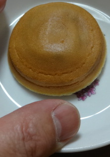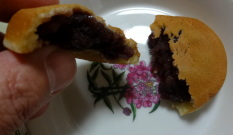 阿闍梨餅は、もち米砂糖卵を合わせて皮とし、その中に、つぶあんが入っている。