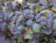 花は、紫色で、10センチから15センチぐらい垂直に花の棒のように、ところどころに、たつ。