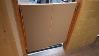 一般的には、腰ぐらいまでで、床から少し上がったところにある小さい扉(ウェスタンドアと呼ばれることもある)に付けられ、厚みは、18㎜ぐらいですることが多い。
